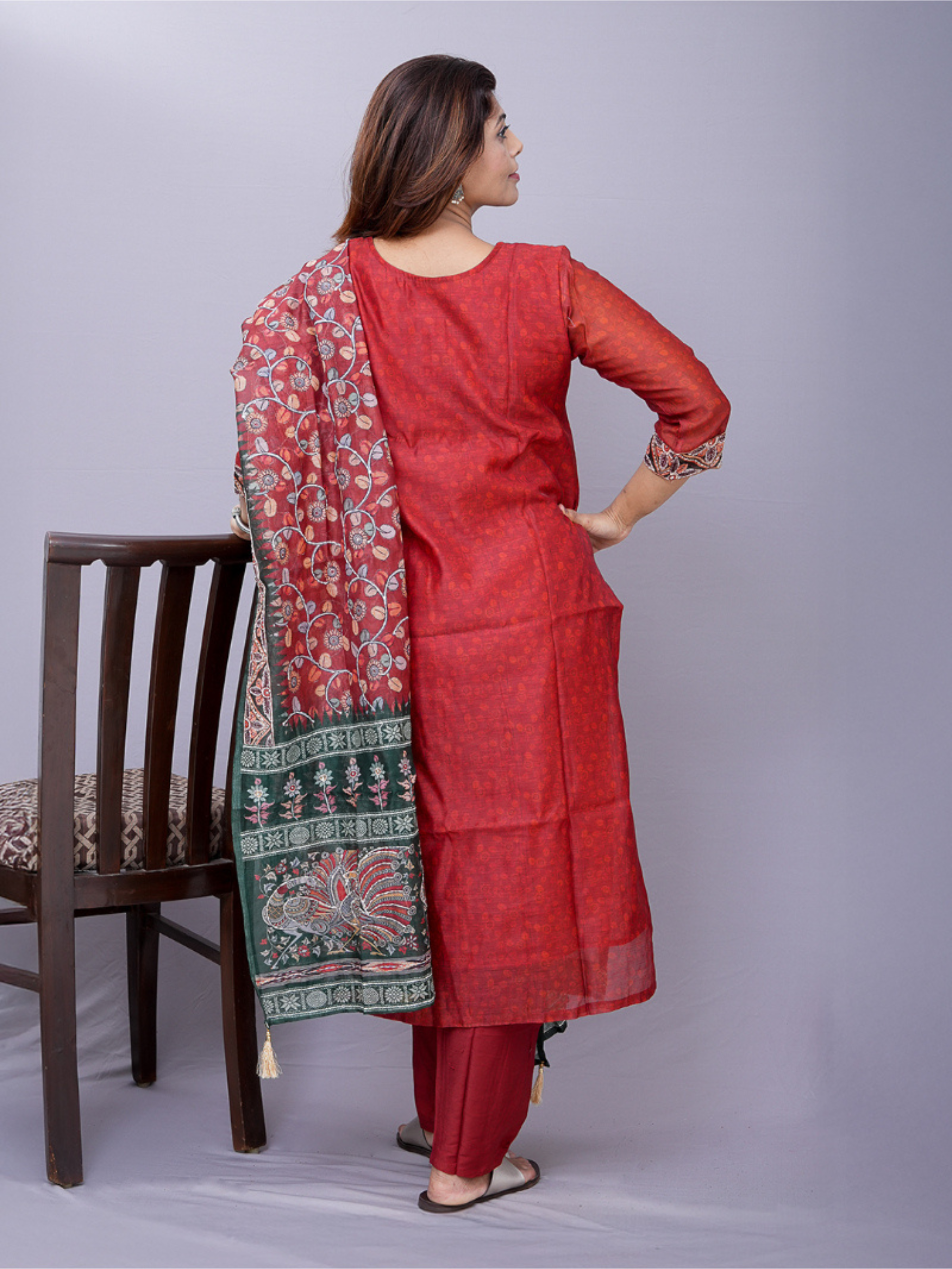 Embrace effortless sophistication with this beautifully designed maroon kurta set, perfect for women who love classic ethnic styles with subtle detailing. The deep maroon base is enriched with delicate all-over prints, creating a refined look that feels both warm and graceful.