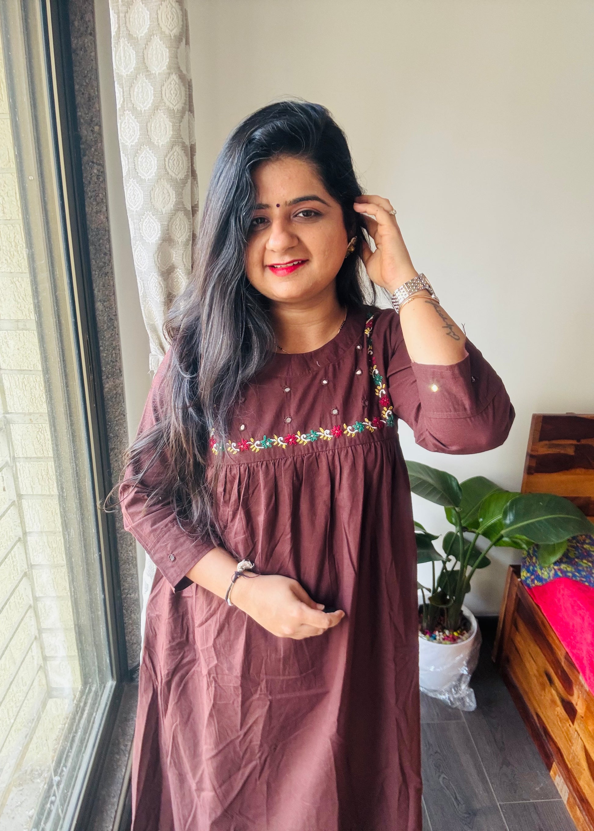 Pure Organic Kurti pant with Kutch thread work front and back with stylish neck 💜🎀