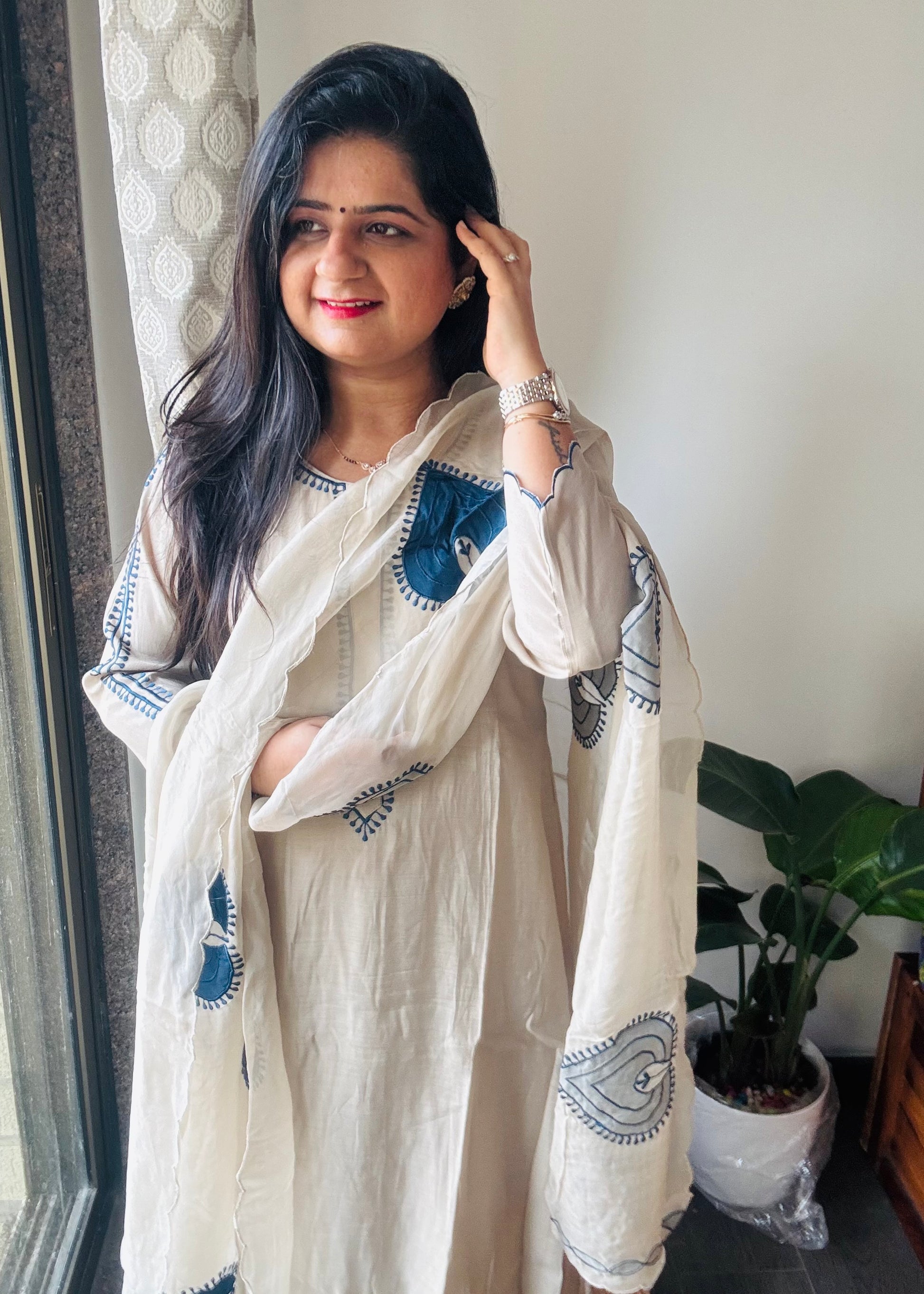 🎨 Colour Palette: Ivory base with hand-detailed indigo motifs – a classy duo that never goes out of style.