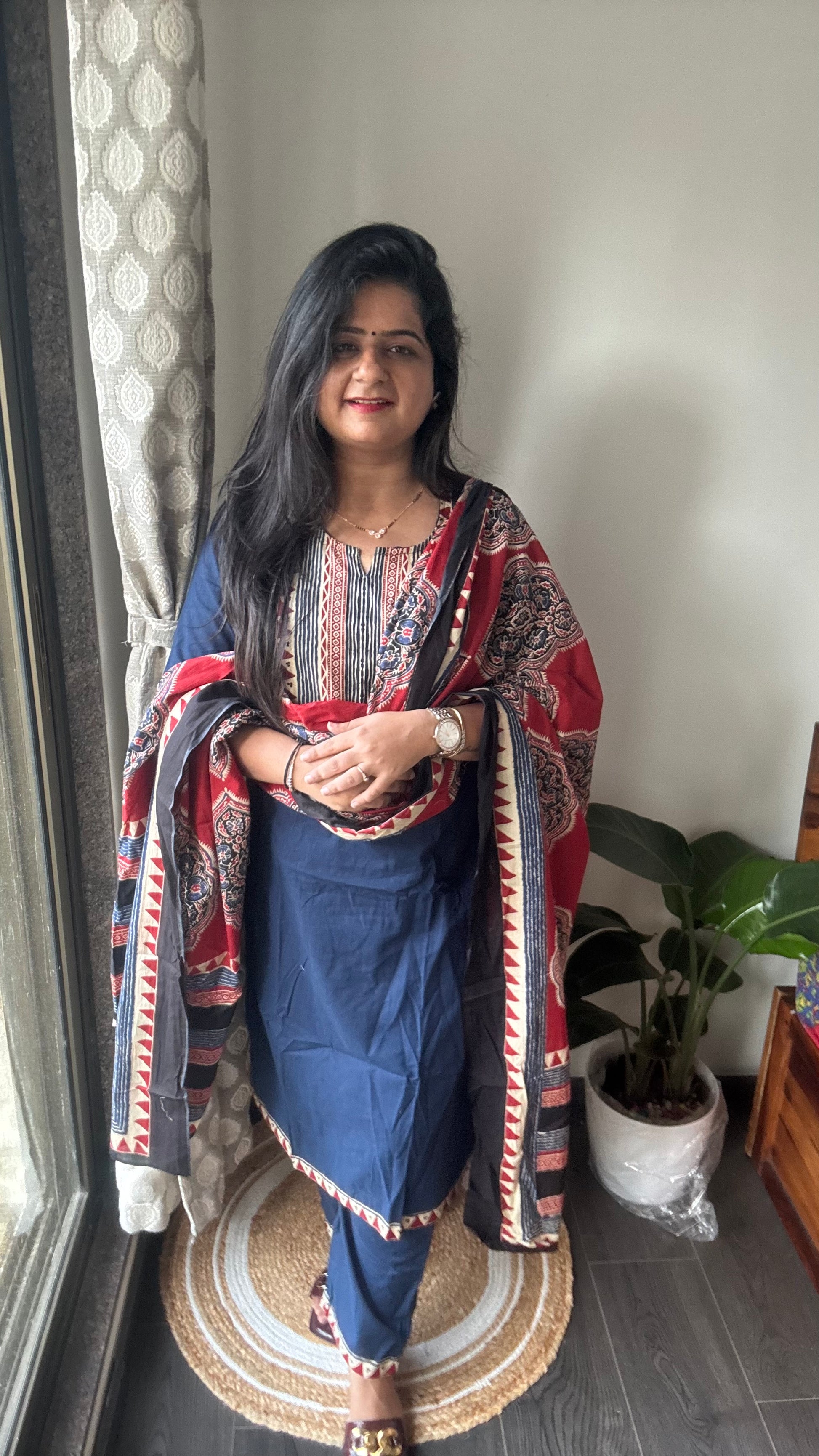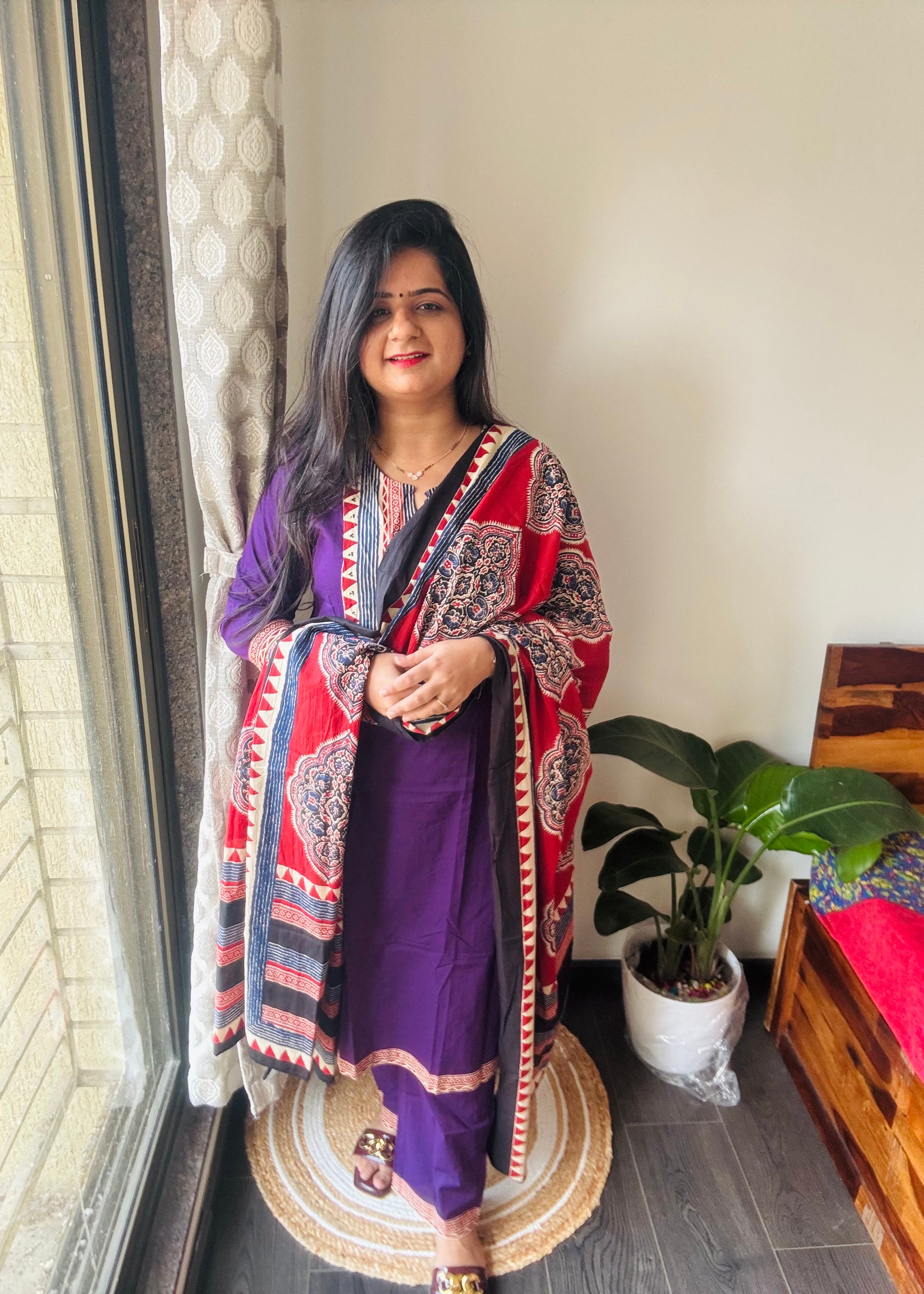 Pure cotton dress with most Instagram trending ajarak prints soft duppata 💜🎀